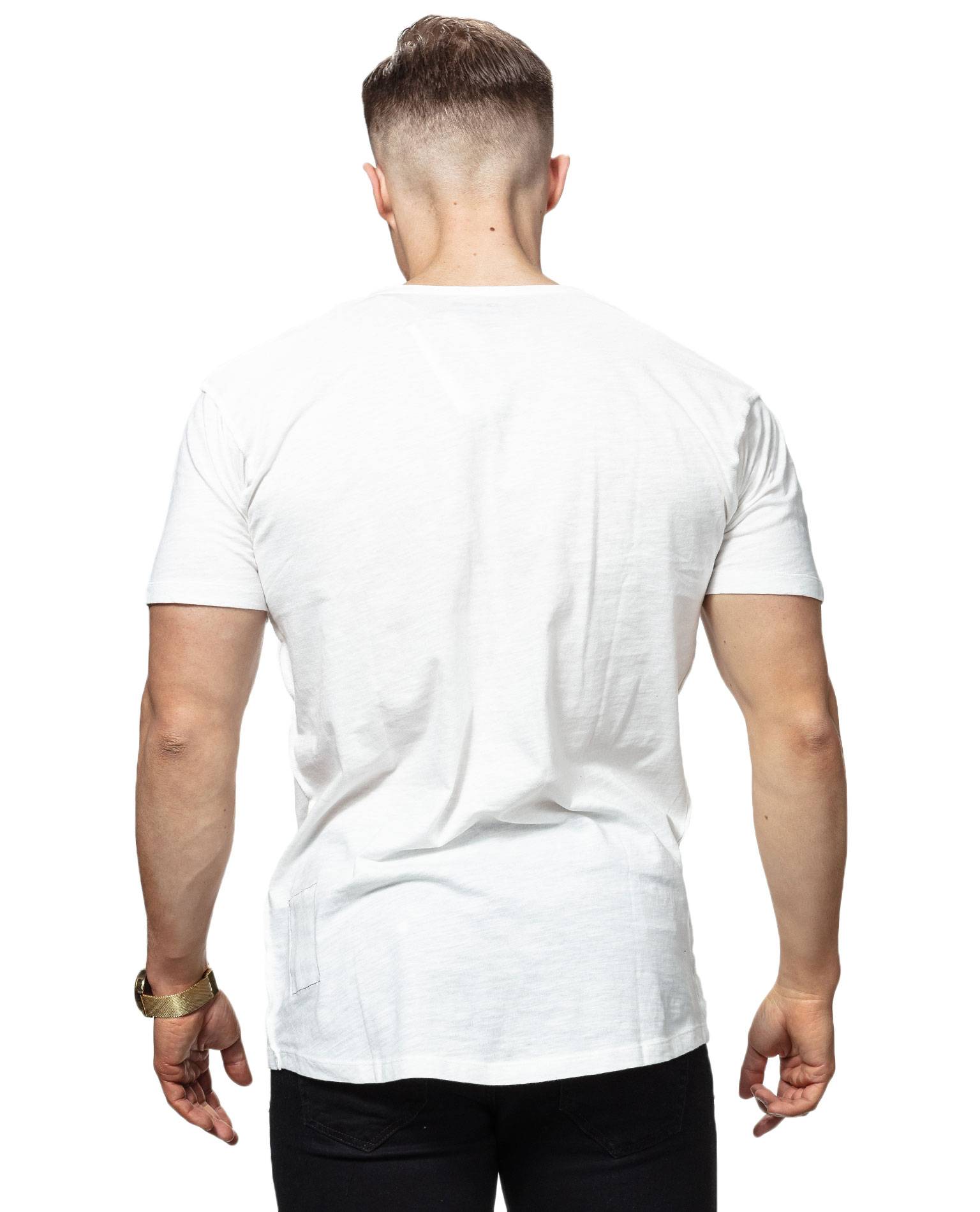 JACK & JONES vit t-shirt. En lite lösare modell som passar bra med svarta jeans och en läderjacka på våren. Utskriften har ett inre tryck som hörs framåt.