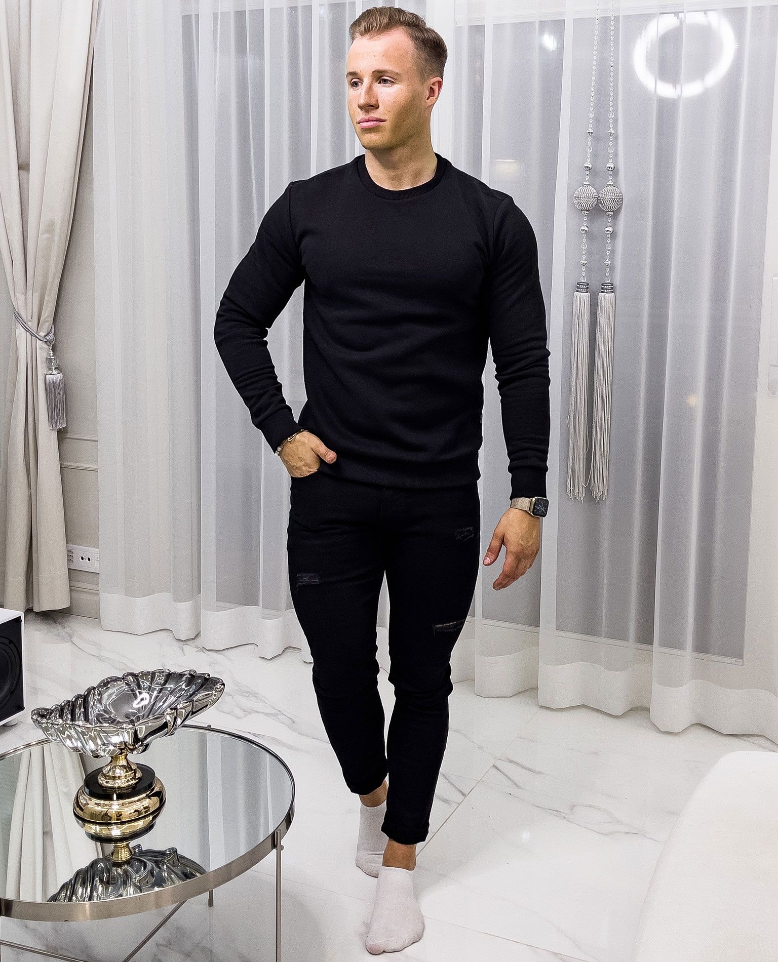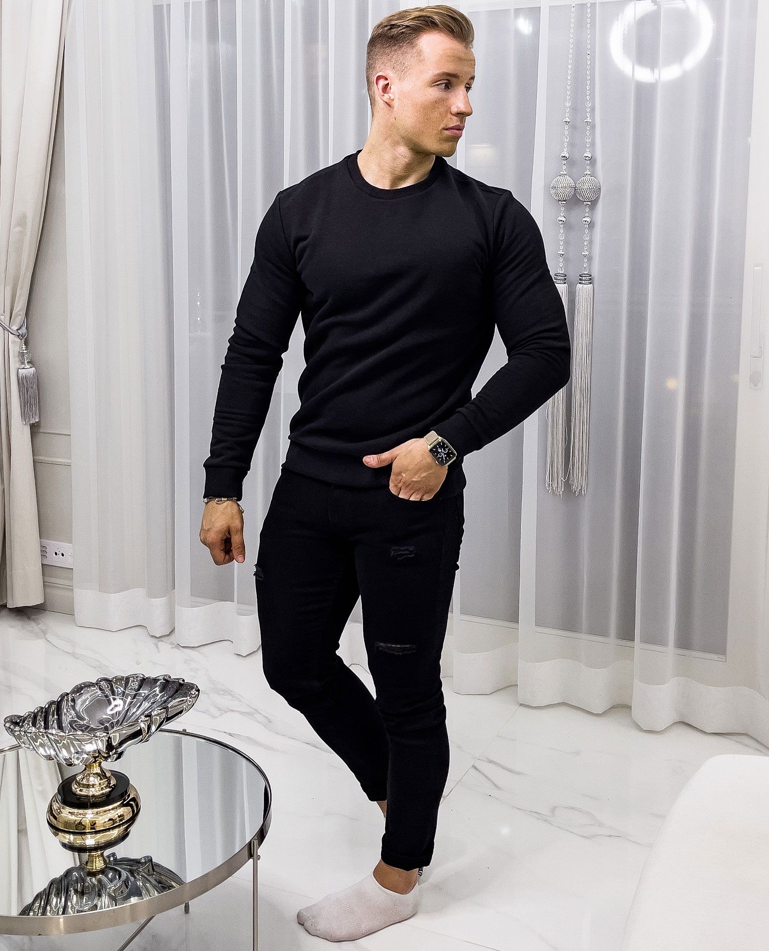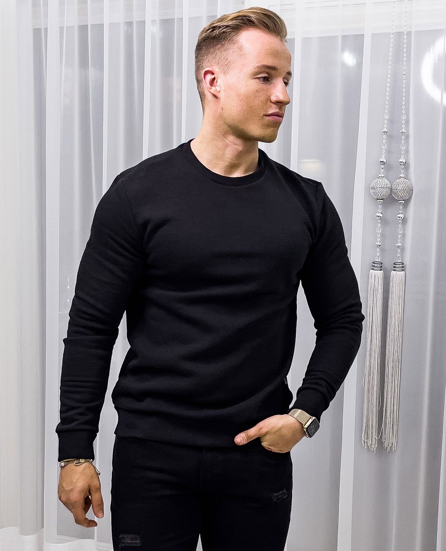 ONLY & SONS svart tröja. Mjuk, borstad yta på insidan. En utmärkt basskjorta för vardags- och hemmabruk. Resår i fåll och ärmar.