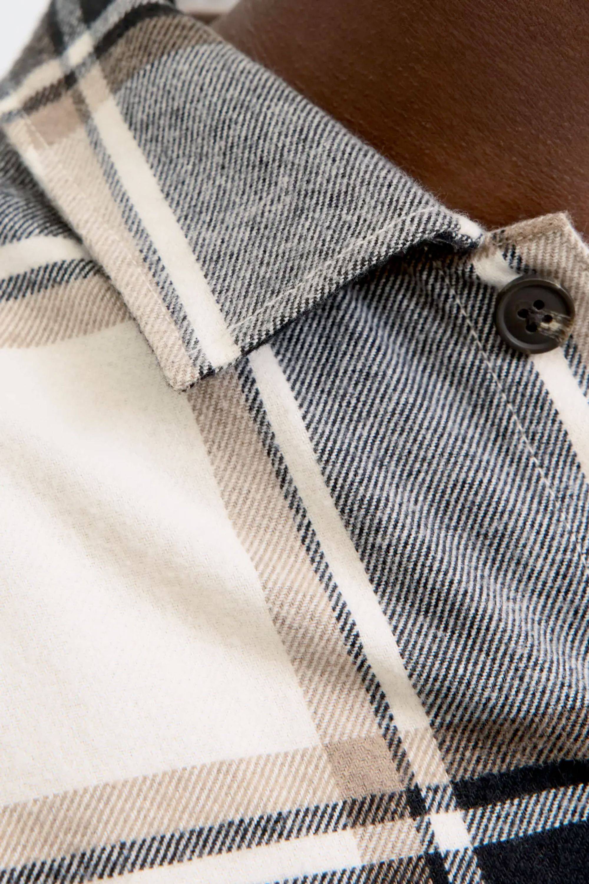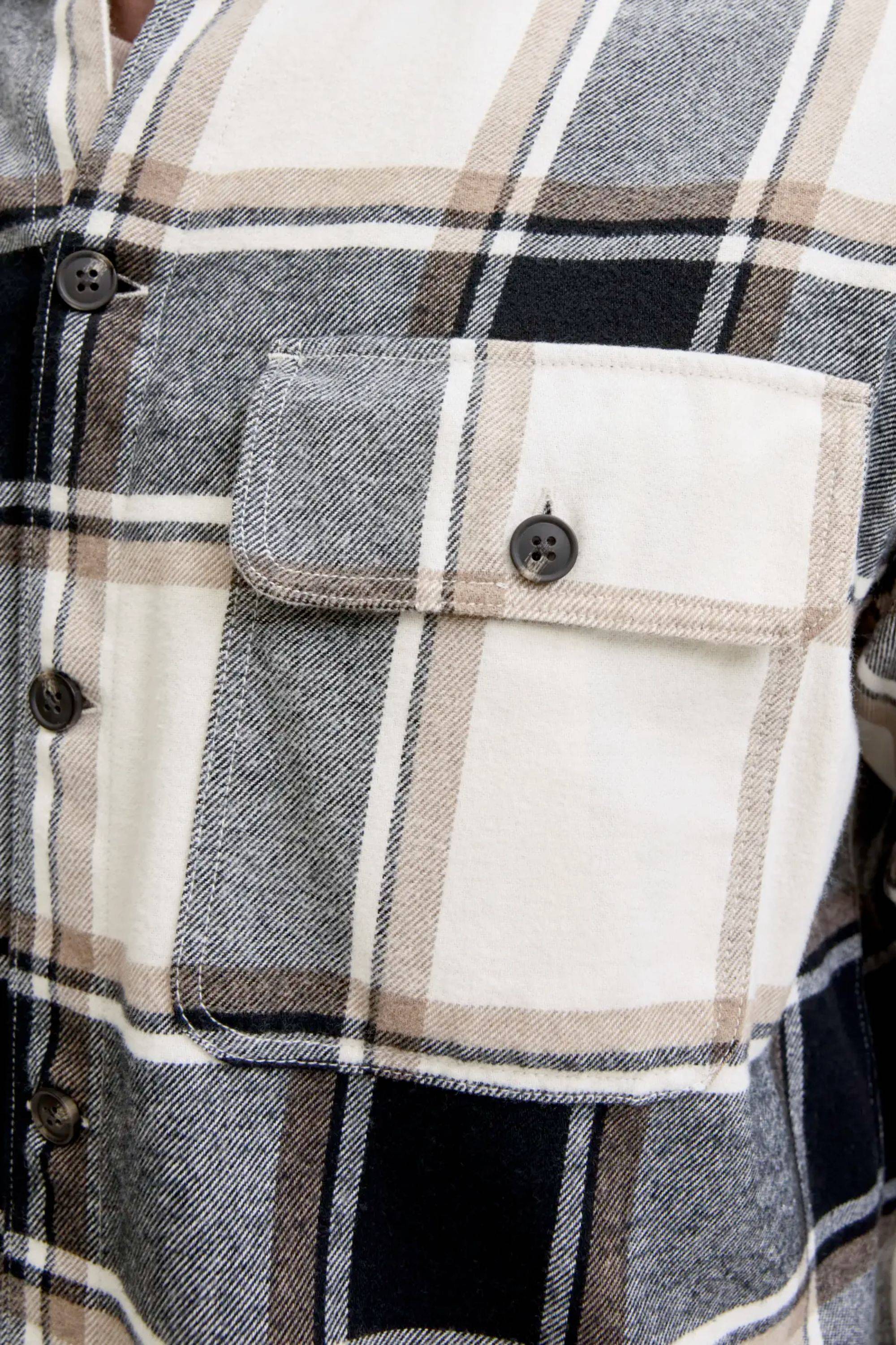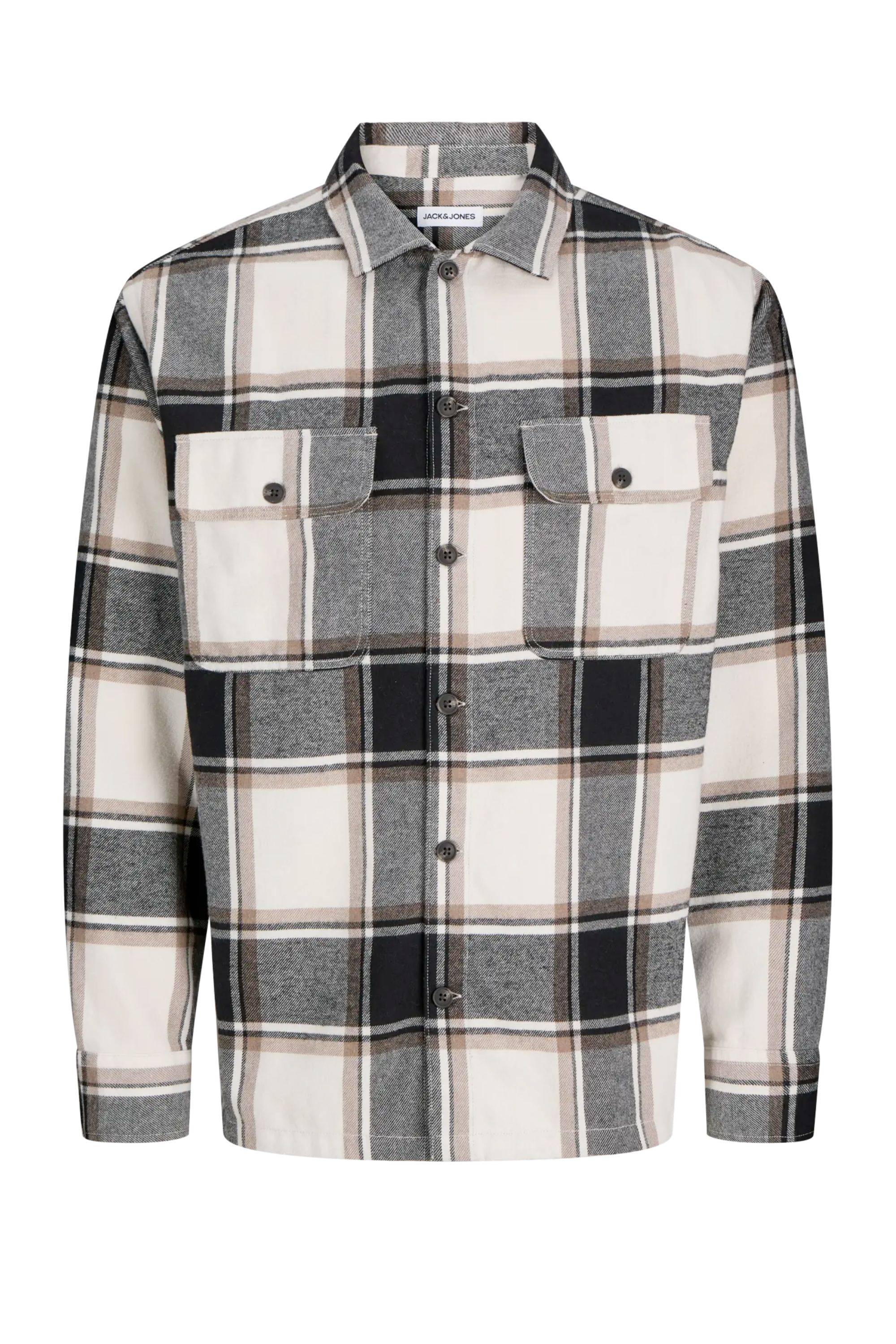 Rutig långärmad skjorta för män från JACK&JONES. Trendig och vårig färgsättning i svart, naturvitt och ljusbrunt. Knappstängning, bröstfickor med knappar och en något ledigare passform. Passar bra till exempel med svarta jeans och en t-shirt, antingen uppknäppt eller knäppt.