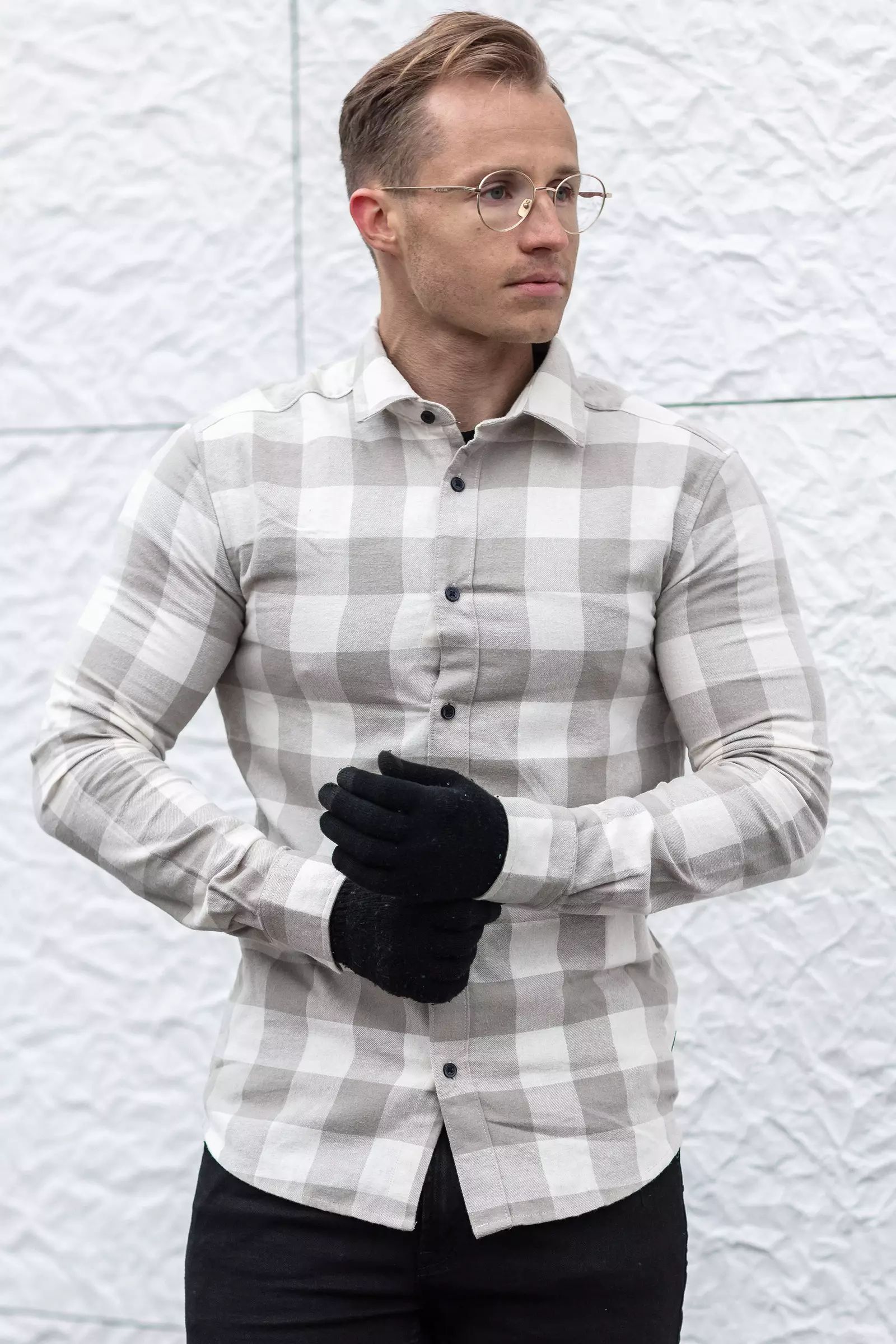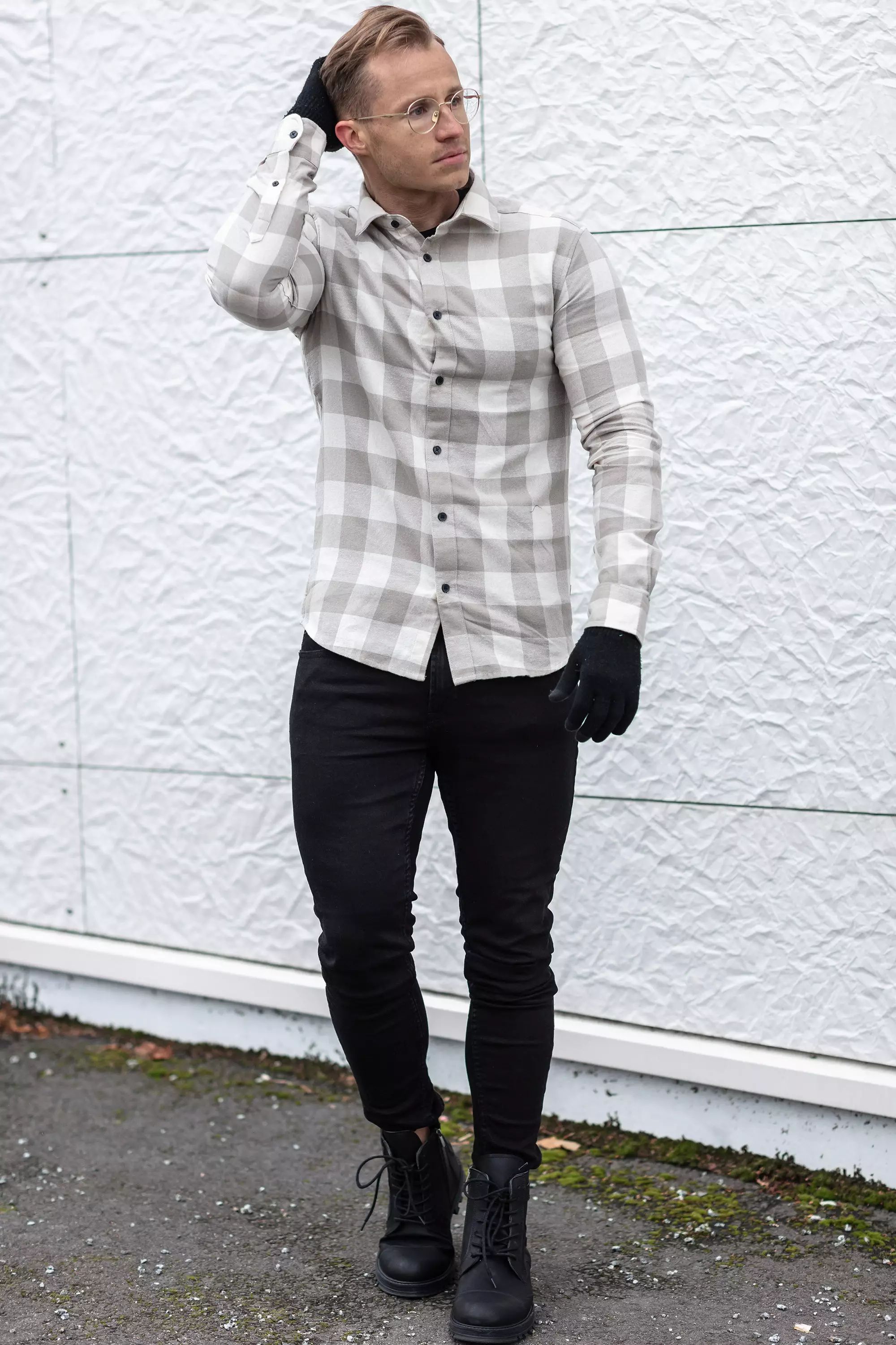 ONLY & SONS ljusrutig skjorta. Rutiga skjortor är perfekta för hösten! Produkten kan bäras öppen eller stängd, kombinerad med en skinnjacka och svarta jeans. Klassisk knappknäppning, logotyp på fållen.