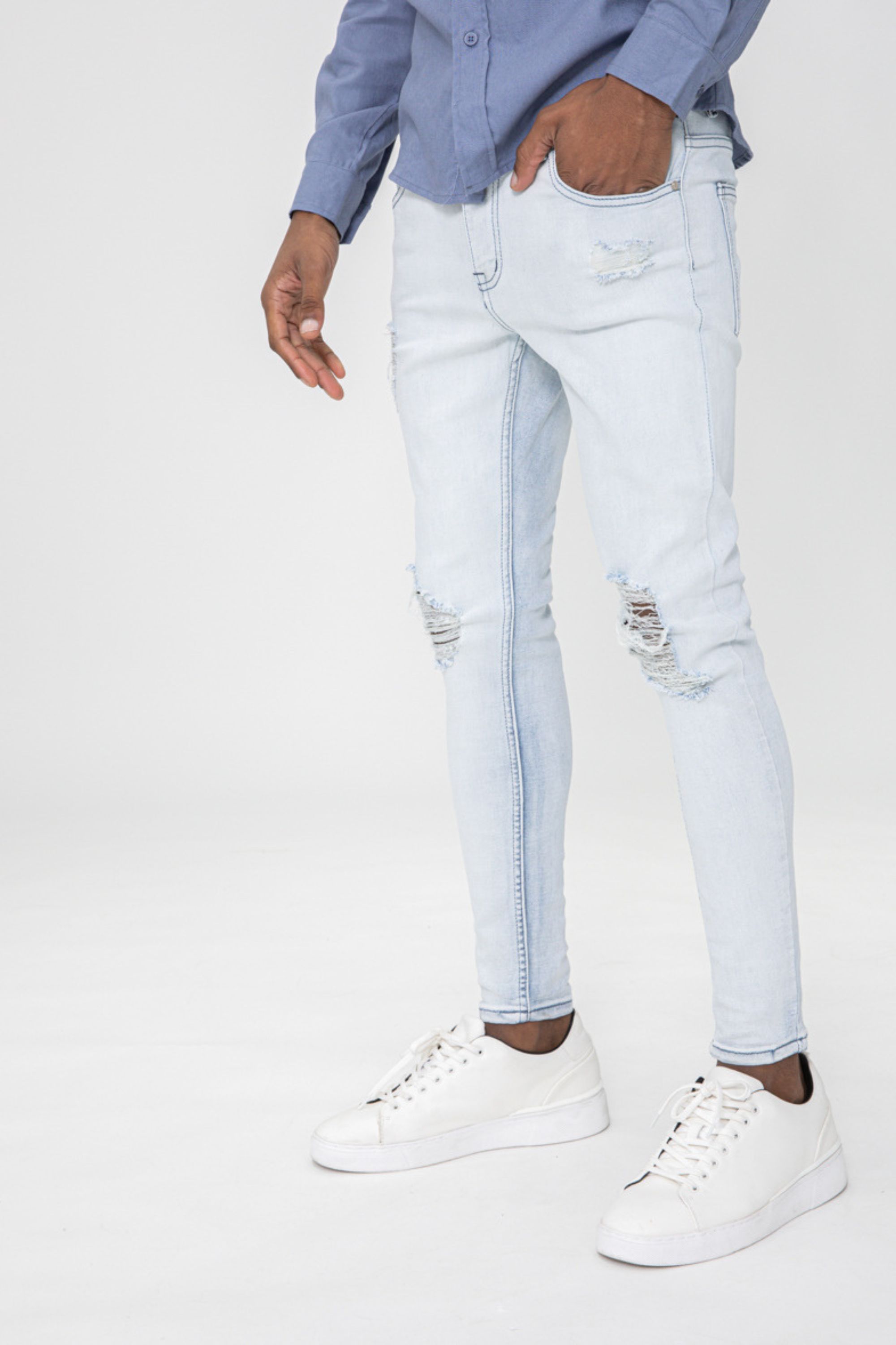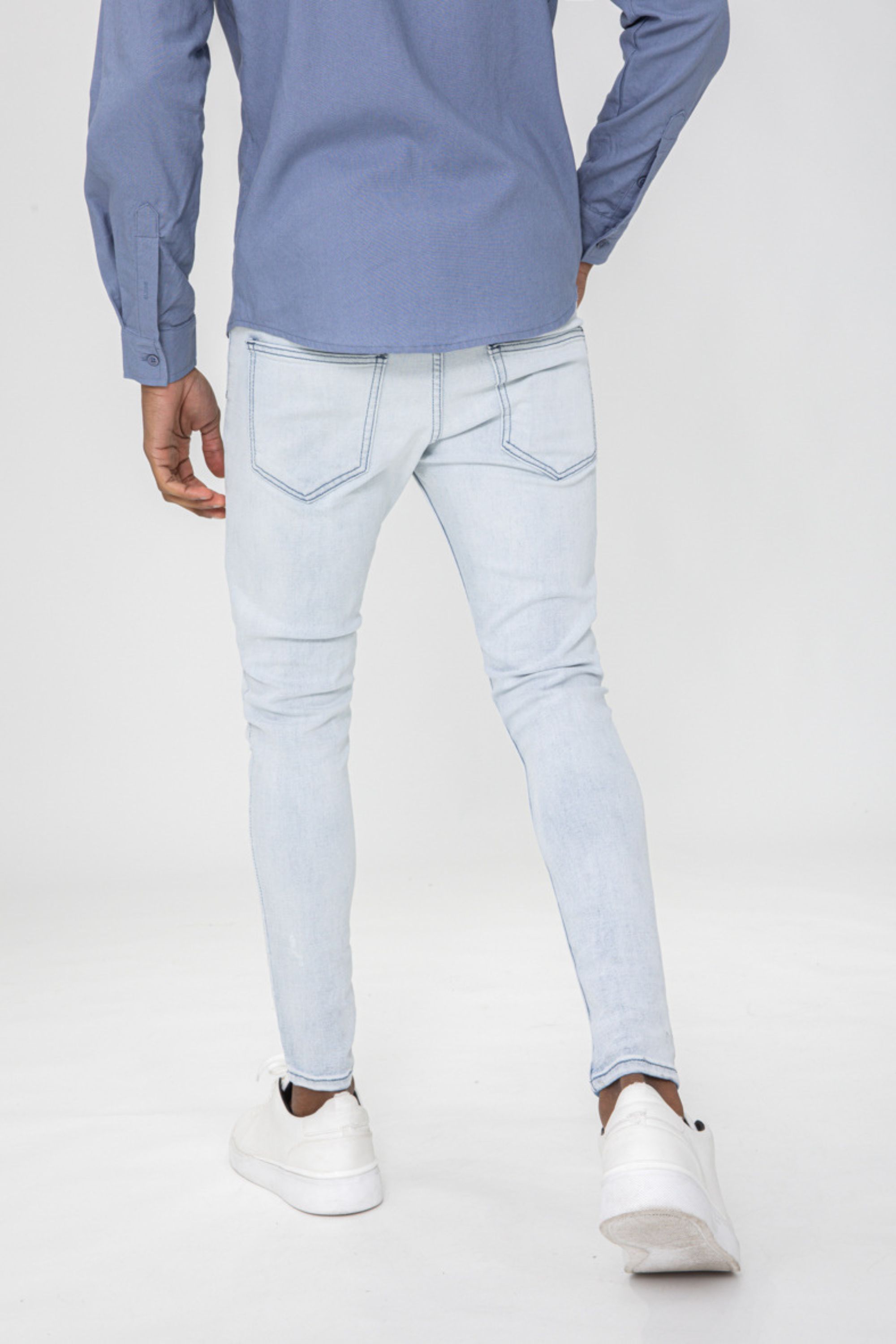 - Produktväg Hemsida Jeans för Män Ljusblå jeans med sliten yta L32 FRILIVIN