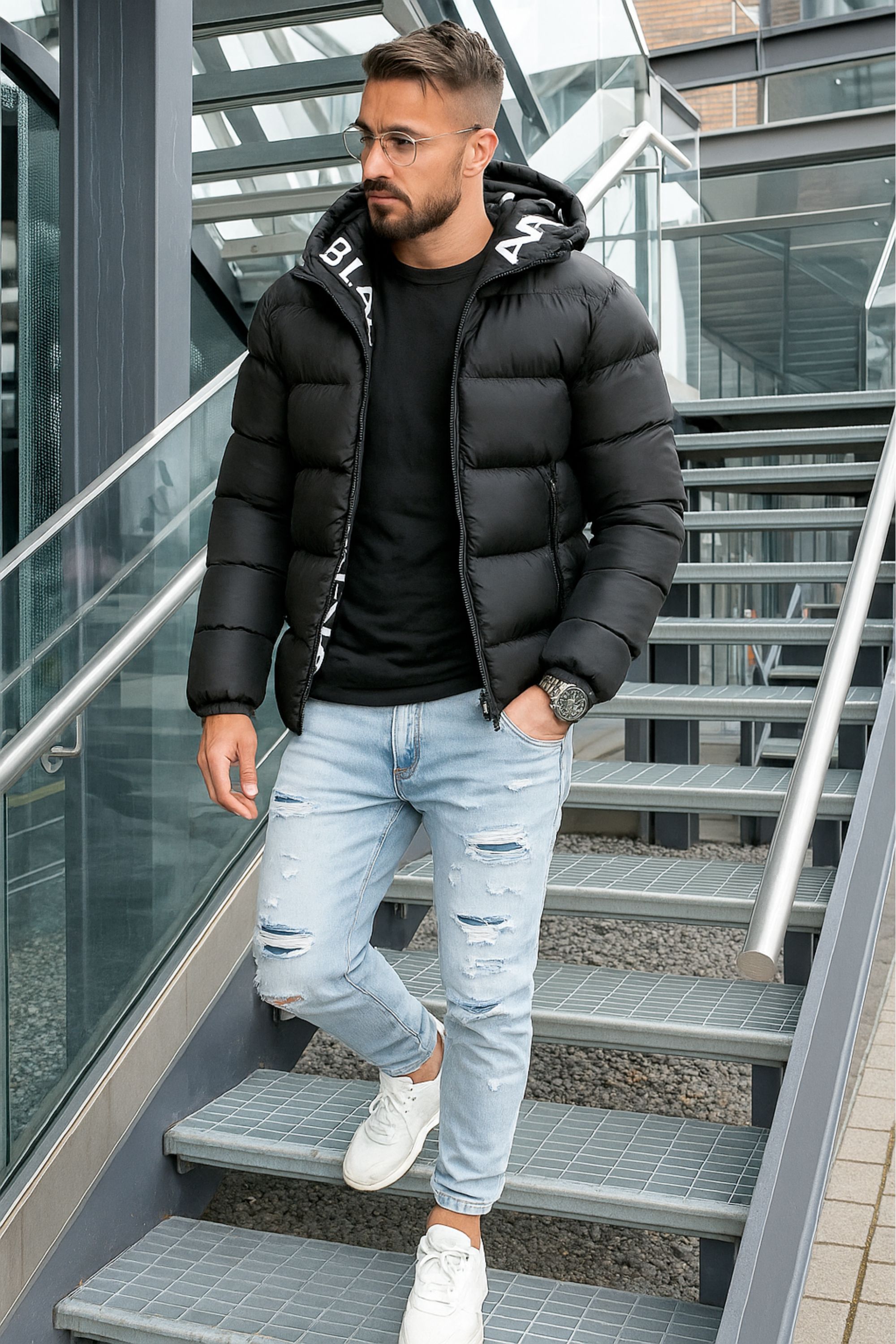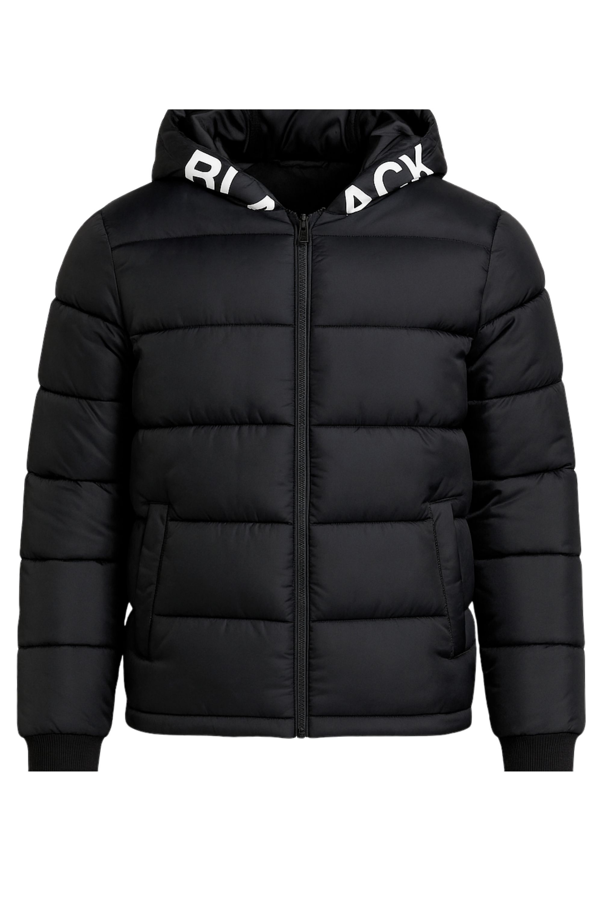 Svart varm vinterjacka med texttryck JERONE